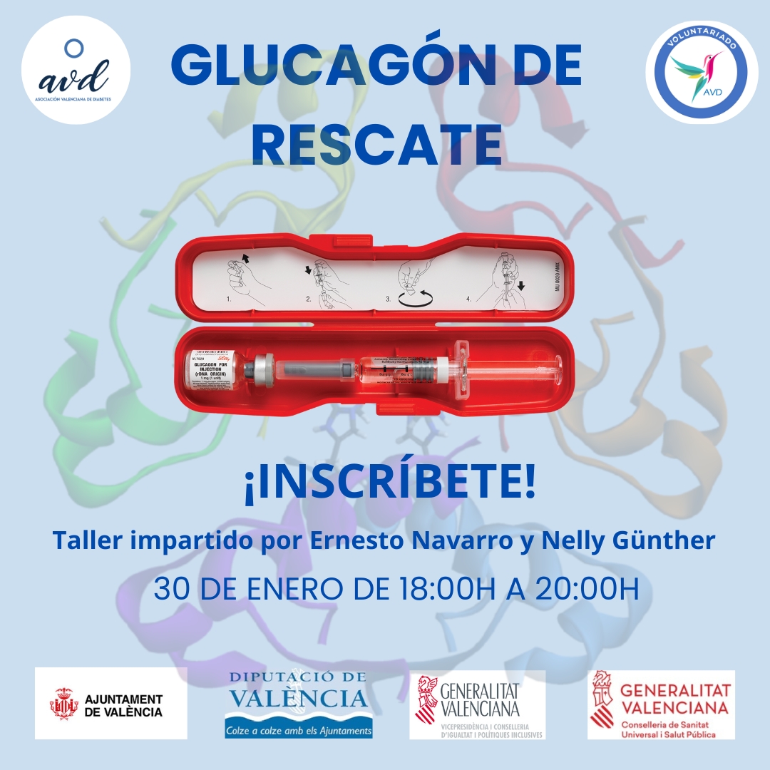 El próximo viernes 30 de enero a las 18:00 h se celebrará un taller de “Glucagón de rescate”, impartido por Ernesto Navarro, presidente de la AVD, y Nelly Günther, vocal de la AVD.